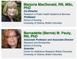 Marjorie MacDonald, RN, MSc, PhD, Professor and Co-Director, Research in Public Health Systems and Services, and Bernadette M. Pauly, RN, PhD, Associate Director, Research and Scholarship, School of Nursing, University of Victoria, British Columbia