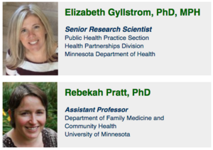 Elizabeth Gyllstrom, Ph.D., M.P.H., Research Scientist, Public Health Practice Section, Minnesota Department of Health and Rebekah Pratt, Ph.D., Assistant Professor, Family Medicine and Community Health, University of Minnesota School of Medicine
