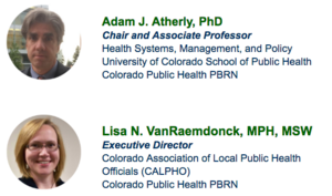 Adam J. Atherly, PhD, University of Colorado and Lisa VanRaemdonck, MPH, MSW, Colorado Association of Local Public Health Officials (CALPHO), CO Public Health PBRN